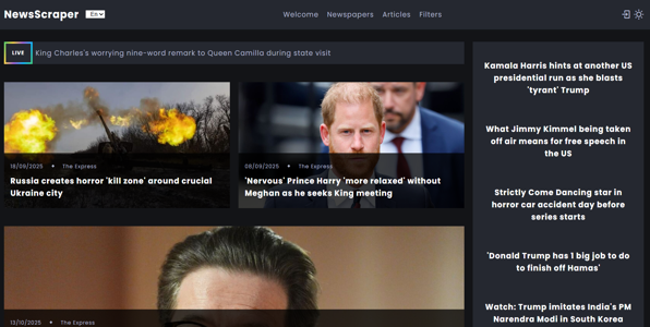 Newsscraper is a web application for news scraping. Through Python search algorithms, the most important news is made available in three different languages.